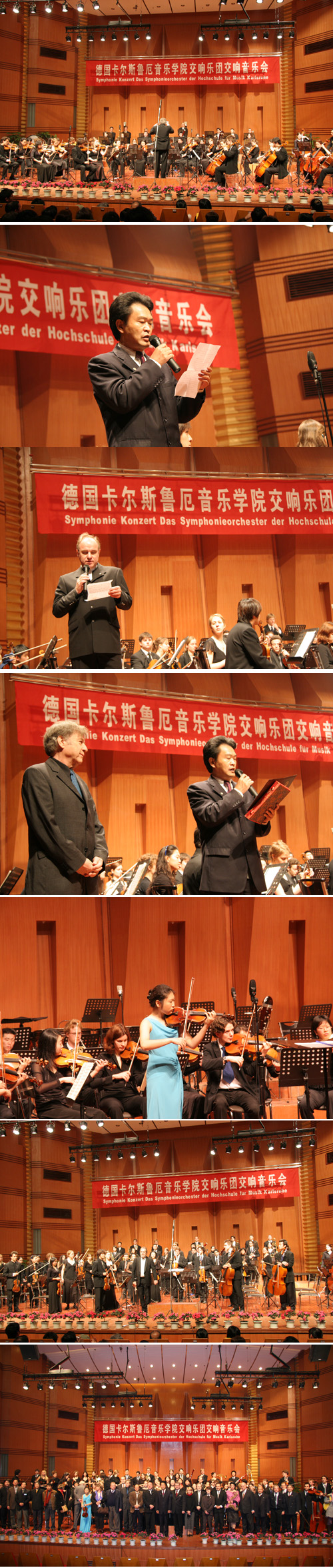 12月8日晚,德国卡尔斯鲁厄音乐学院交响乐团一行近70人在我院大音乐厅进行了专场演出。我院敖昌群院长向长期关心和帮助我院室内乐教学的德国卡尔斯鲁厄音乐学院著名小提琴家演奏家、教育家约克•沃尔夫冈•雅恩教授颁发了四川省人民政府特授予外国专家的“四川金顶奖”。演出取得了圆满成功。