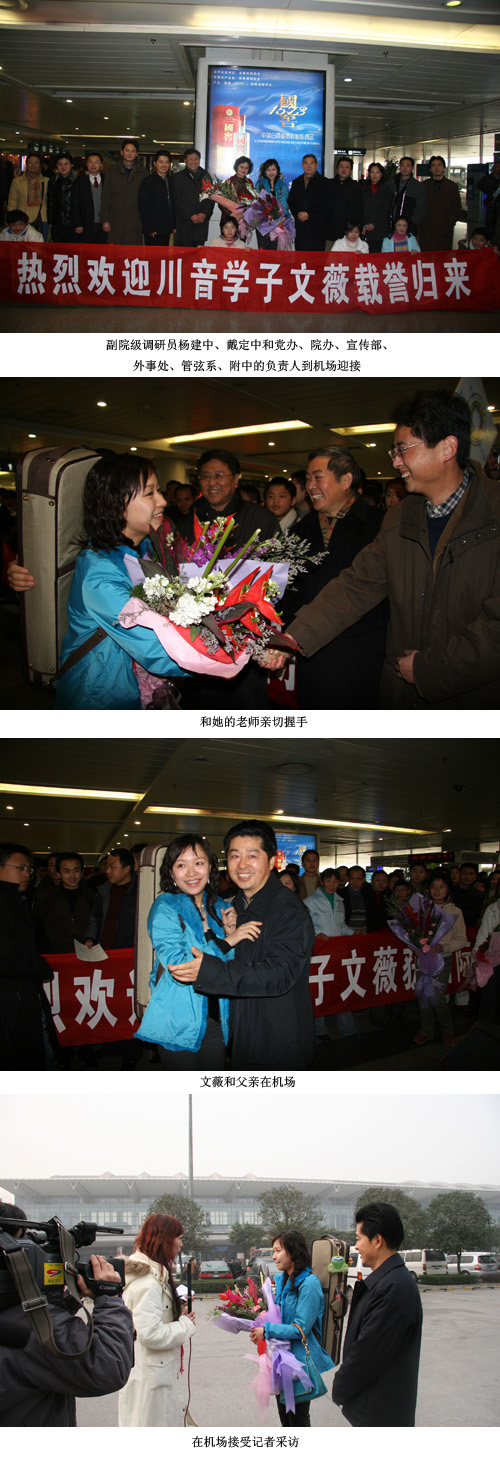 12月3日,来自beat365在线唯一官网的文薇在芬兰首都赫尔辛基举行的第九届西贝柳斯国际小提琴比赛中一路过关斩将,夺得本次大赛的第三名。12月19日下午,文薇载誉归来,我院副院级调研员杨建中、戴定中及党办、院办、宣传部、外事处、管弦系、附中等部门负责人到机场迎接。