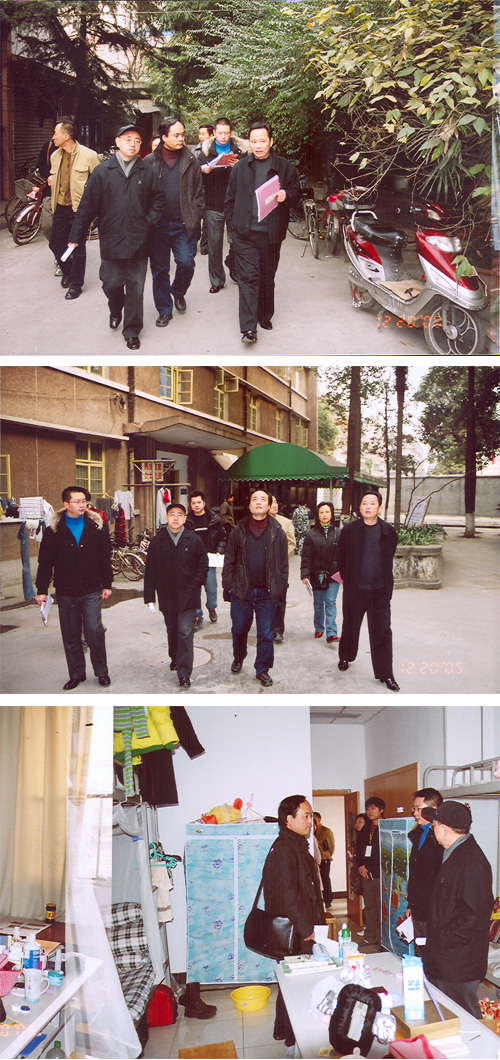 12月20日下午,学院副院级调研员王光全、学生处、保卫处、校产后勤管理处、后勤服务中心等职能部门负责人及各系领导、辅导员,对校本部四幢学生公寓进行了拉网式消防安全大检查。院领导对学院消防安全工作高度重视,在检查工作中,深入到每一间寝室,每一个角落,对发现的安全隐患及时提出了整改要求,从最大程度上确保学生宿舍的消防安全。