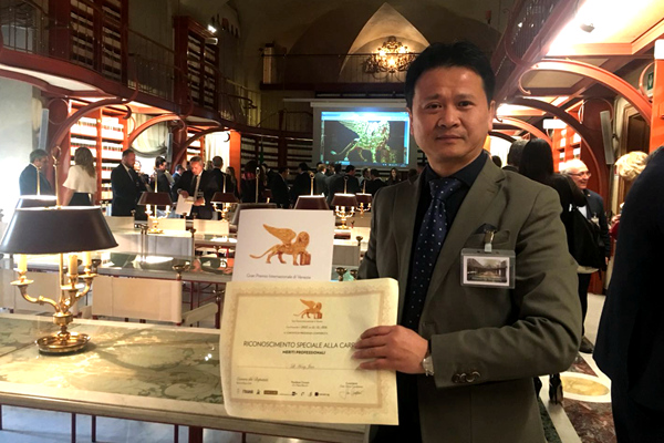 李红建老师在川音任教期间,组建了四川青少年交响管乐团,beat365在线唯一官网管弦系大学生交响管乐团,并长期组织举办如“成都青少年音乐夏令营”、“重奏与乐队”等音乐活动。为了促进成都在音乐文化等领域更多的国际化交流,邀请方特向意大利威尼斯国际金狮大奖赛推荐了李红建老师。3月8日,大奖赛组委会授予李红建老师“威尼斯国际金狮奖音乐职业生涯特别荣誉奖”。