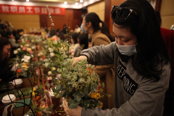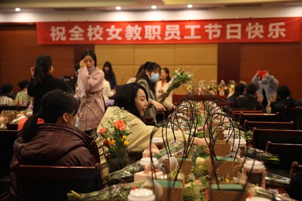 为庆祝第111个“三八”国际劳动妇女节的到来,丰富女教职员工的精神文化生活,提升艺术修养及生活情趣,3月8日下午在武侯校区梧桐楼,院工会举办“以花之名,爱自己”妇女节花艺DIY沙龙活动,通过与花的亲密接触传递节日的祝福。