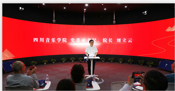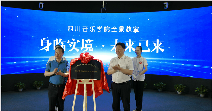揭牌仪式前展播了川音近几年在高校在线开放课程(慕课)改革成果的总结视频。截止今年5月,川音在线开放课程总数已达40门,选修学校共计500余所,修读学生共27.1万人次,建成国家一流本科专业建设点4个,省级一流本科专业建设点5个;国家级一流课程1门,省级一流课程15门。还展播了川音15门示范慕课在智慧教学空间前期试验的教学风采。在过去的一个月里,全景教室进行了30节见面课,涵盖86所高校,触达5672名学生。同喀什大学、西藏大学、阿坝师范学院共举行7次同步课堂,覆盖400余名学生。