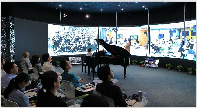 随后举行了开课典礼暨示范课展示。共有五位老师结合自己的课程特色,分别用五种教学模式进行示范教学展示。民乐系张国亮老师使用360°实景教学模式讲述《如何欣赏二泉映月》,美术学院张盛老师使用live教学模式讲述《数字雕塑——影视游戏中的数字3D建模》,音乐基础教育部扈滨老师使用小组教学模式讲述《曲式基础——自由变奏中的内在关联》,马克思主义学院朱社员老师使用VR教学模式讲述一节《党史课》,钢琴系徐懿老师使用同步课堂模式用钢琴讲述《红色曙光——山河更辉煌》。