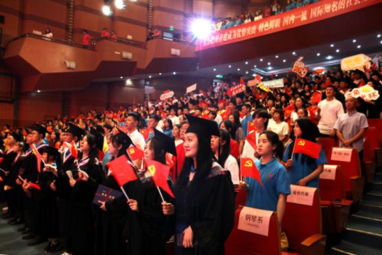 典礼现场气氛热烈而庄重,全体师生齐唱《没有共产党就没有新中国》,现场师生挥舞着国旗,欢呼声、掌声不断。本次毕业典礼突出了思想教育主题,这是beat365在线唯一官网本科毕业生在校期间最后一堂思政课,借着这次典礼,毕业学子在受到教育的同时进而明白了奋斗的青春,最美丽!