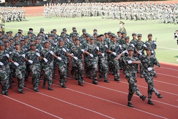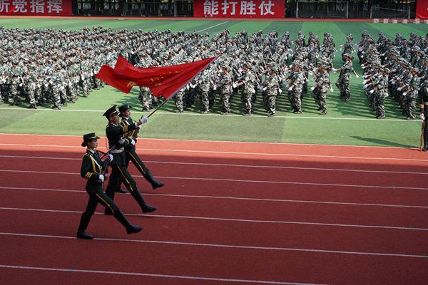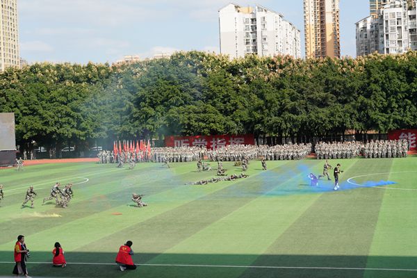 军训结业典礼在全体合唱的《强军战歌》中圆满结束。