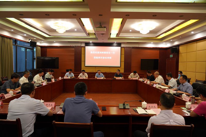 会议期间,牟文虎从建设模式和管理规划等方面介绍了川音临空经济区校区的建设情况。双方就各自校区管理模式,学科建设、基础建设等相关工作经验作了分享交流。