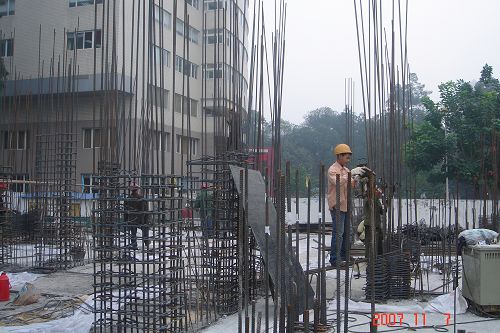 院本部教工住宅工程自5月1日正式动工以来,在院领导的全力支持下,经过基建处、施工单位、设计单位、监理单位的共同努力,克服了施工场地狭窄、基础地质情况复杂、不能进行夜间施工等诸多困难,各项工作正有条不紊地按进度计划进行。先后完成了地基换填加固、抗浮锚杆以及二单元(小户型)基础底板防水、基础底板钢筋混凝土浇筑、地下室钢筋混凝土浇筑、人防工程等地下部分工程项目的施工,于近期完成了二单元(小户型)的地下室顶板混凝土浇筑, 达到正负零层,转入地上部分主体结构的施工工作。