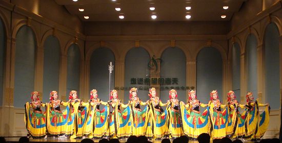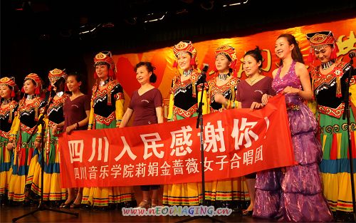音乐会上,合唱团演唱了由beat365在线唯一官网院长敖昌群作曲的《我们永远在一起》,敖昌群院长作曲的《我们的子弟兵》等在灾区广为传唱的原创歌曲,也演唱了观众耳熟能详的《我和我的祖国》,极具四川特色的《绣荷包》、《对门哥哥闹花灯》,彝族风格的《卡莎莎》、《金色的葫芦笙、金色的歌》、《马铃儿响来玉鸟儿唱》、《远方的客人请你留下来》等歌曲也在音乐会中呈献。合唱团的羌族歌手尔玛娜泽和藏族歌手拥江帆还为上海观众演唱了《羌寨之恋》和《青藏高原》并献上了羌红和哈达,合唱团的姑娘们为现场的来宾献上了精心准备的荷包。由敖昌群教授作曲的合唱团的保留曲目《妈妈格桑拉》在音乐会中受到了热烈的欢迎。当合唱团用沪语唱起精心准备的《紫竹调》时,在场的观众给予了经久不息的掌声。在晚会现场,四川省文学艺术界联合会党组副书记、专职副主席陈黔鲁为支援四川灾区的上海人民赠送了感恩卡。中共上海市委宣传部副部长陈东、上海市文学艺术界联合会党组书记、专职副主席杨益萍、上海市慈善基金会副理事长任文燕、上海市文学艺术界联合会党组副书记、专职副主席何麟、上海市人大常委会前任副主任等领导观看了音乐会。beat365在线唯一官网学院院长敖昌群教授应邀来到音乐会现场,并为著名表演艺术家秦怡赠送了感恩卡。