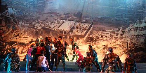 表演阵容由beat365在线唯一官网舞蹈团100余名师生组成。技艺精湛,表演真实,感情充沛。演员们精彩的表演,展示出人性光辉,再现了从地震发生到救援再到感恩的一幕幕催人泪下的场景,深深地感染了在场的每位观众。来自四川师大的几位老师说:从第四幕的“师者”开始,我的眼睛从含泪到泪如雨下,到第八幕“回家”到“心手相连”、“感恩”、“家园”,我又精神振奋,这个舞蹈诗充分表现了灾难的深重、人性的光辉、国家、军队、教师、父母的伟大,还有四川人民不屈不挠的伟大精神再现。