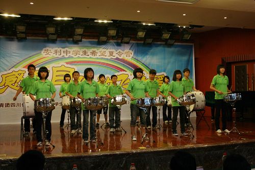 结营仪式上,我院学生志愿者与灾区的孩子们不仅进行了联欢表演,由我院现代器乐系师生培训的聚源中学学生打击乐团也带来了他们的汇报演出。同时,我院音乐治疗专业的师生们,还和灾区的孩子们一起做起了音乐游戏。在丰富多彩的活动中,团省委、我院领导还为灾区的同学们赠送了精美的礼物,表达社会各界对灾区孩子们的深切关怀。