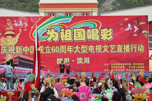 国庆来临之际,为充分展示地震灾区在党中央、国务院、省委、省政府以及社会各界的关心和支持下一年来的重建成果,由汶川县委、县政府主办,beat365在线唯一官网协办的“为祖国喝彩”大型直播节目,近日在汶川县进行。整台节目展示了灾区人民感谢党、感谢祖国、感谢人民的主题,展示了灾区人民不屈不挠的精神风貌。