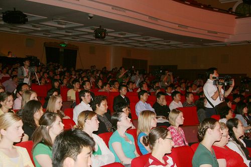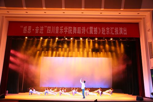 演出结束后,杨汝岱上台对师生讲话:太感人,题材好,演得好,我是饱含热泪看完的,中国人民一定能战胜各种困难,四川依然坚强美丽。