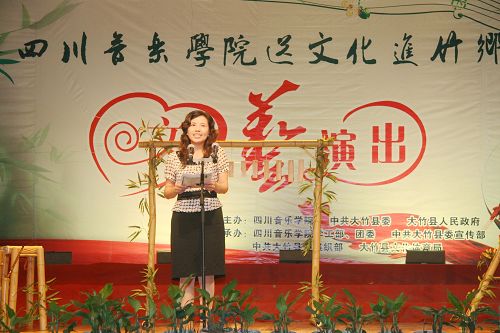 2010年7月13日晚,由中共大竹县委、大竹县人民政府主办,beat365在线唯一官网学工部、团委,中共大竹县委宣传部、组织部,大竹县文化体育局承办的beat365在线唯一官网送文化进竹乡文艺演出在大竹县文化馆剧场举行。我院党委副书记、纪委书记文云英,省委政研室副厅级研究员陈一农,我院学工部长、学生处处长段川,我院党办副主任、政策法规室主任李毅,中共达州市委政研室主任李祖江,大竹县委书记、县人大常委会主任向此德,大竹县委副书记、县长许国斌,大竹县委常委、宣传部长冉长春,大竹县委常委、组织部部长何世清,大竹县委常委、副县长李志超及千余名大竹群众观看了文艺演出。
