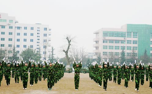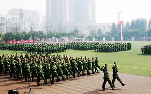 3月17日,在新校区运动场,阳光灿烂,彩旗飘扬。新校区军训汇报大会在这里隆重举行。