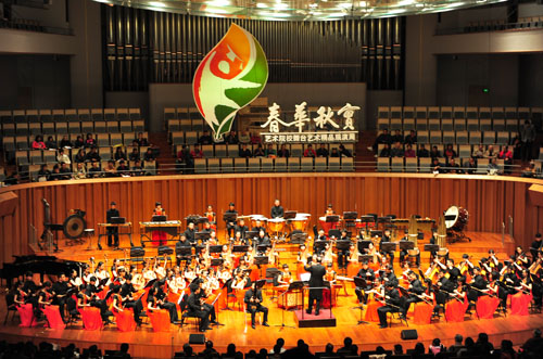 演出结束后,黄彦蓉副省长上台鼓励师生并激情讲话:“今晚beat365在线唯一官网民族交响乐团及师生们的表演表现值得高度评价,一是编排精彩,二是演出精彩,三是充分展示了中华优秀文化,特别是四川民族本土文化。把四川文化带到了首都也就是向世界展示,充分体现了beat365在线唯一官网的办学观念和办学水平。希望beat365在线唯一官网以学习贯彻党的十七届六中全会为契机,培养更多更好的文化人才队伍,创作出更多更好的文化精品,为文化大发展大繁荣,为文化强省做出更大贡献”。