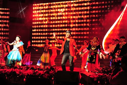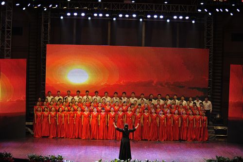 整台晚会节目类型多样,气氛喜庆热烈。在背景音乐《红旗颂》的烘托下,一曲《中国美》拉开了一幅绚丽的歌舞画卷。第一个上演的曲目是混声合唱《为祖国歌唱》,抒发了对历史的追溯与反思以及对党和祖国美好未来的真诚祝愿。音诗画《忆往昔——峥嵘岁月》、舞蹈《东方红》、音乐情景剧《松花江上》、舞蹈《追寻》仿佛带领我们共同回到那个红色的年代,追忆那一段百折不挠的伟大历程,铭记救国救民的艰辛道路。在开天辟地的激扬音符中,指引我们用信念跟随前辈们的脚步,去追寻心中不灭的理想。舞蹈《花儿为什么这样红》、《万物生》展现出极富创意的构思和极具民族风情的艺术内涵。表演唱《祖国万岁》、《唱支山歌给党听》、《江山》、合唱《迎风飘扬的旗》是祖国儿女对祖国、对党的激情赞歌;音诗画《祖国,川音向你报告》则体现了川音全院师生在“为祖国歌唱、为社会奉献、建艺术高地、走时代前列”办学理念的指引下,不断的在全国乃至世界的艺术舞台上,屡创佳绩。川音学子“明德向上,快乐成才”,不仅为川音争光,四川争光,更为祖国争光。最后,整场晚会在热情洋溢的合唱《走向复兴》中完美落幕。出席晚会活动的领导和师生们合影留念。